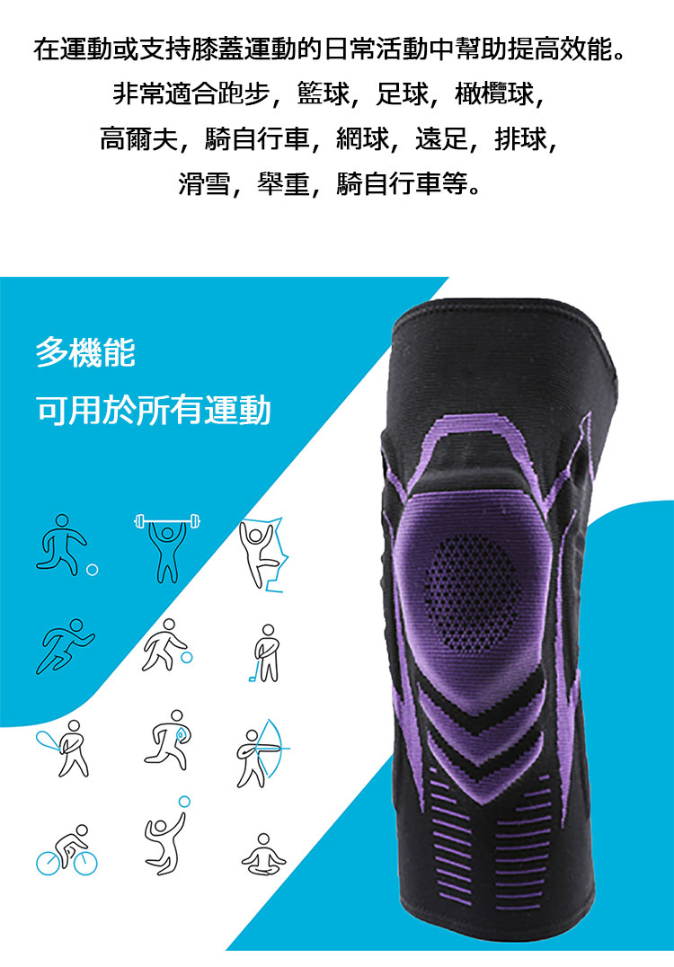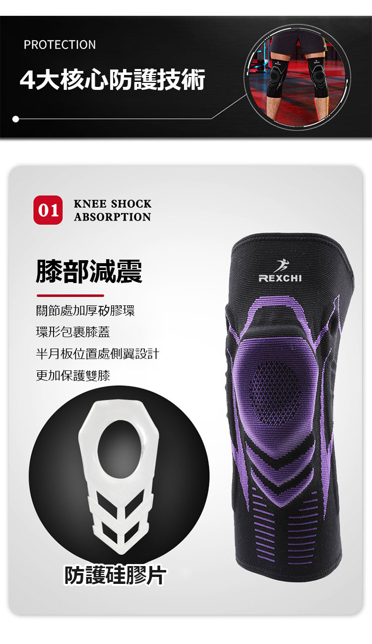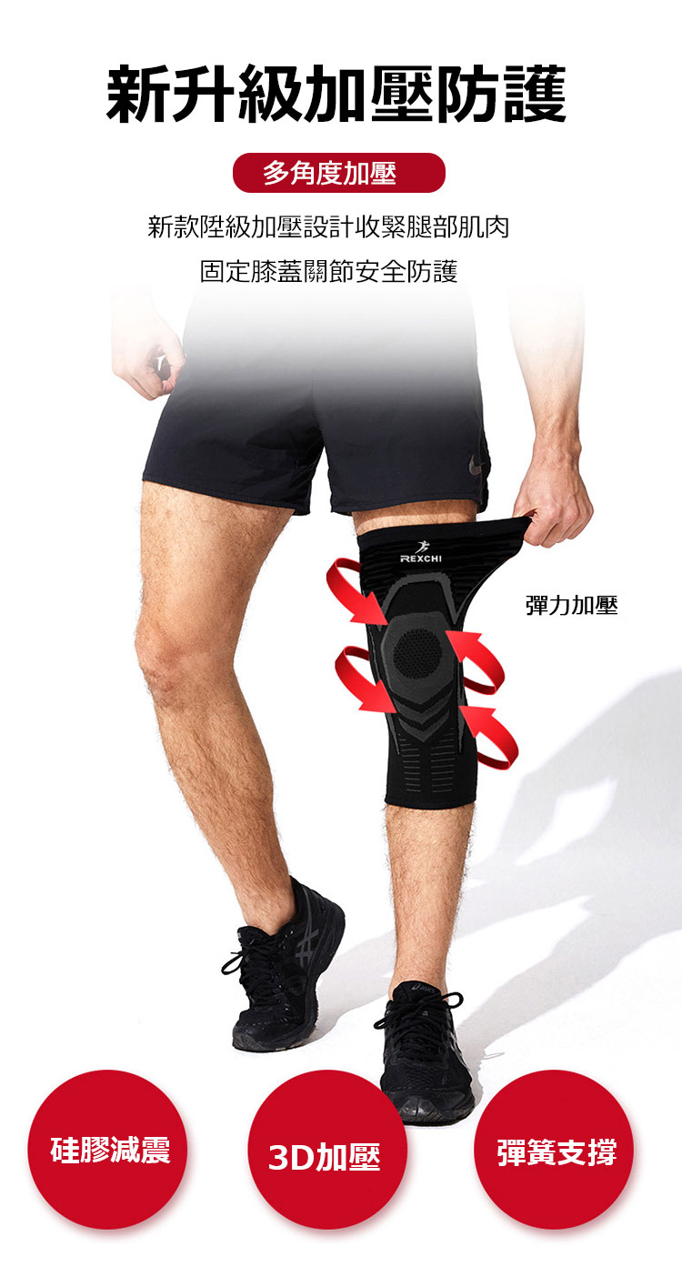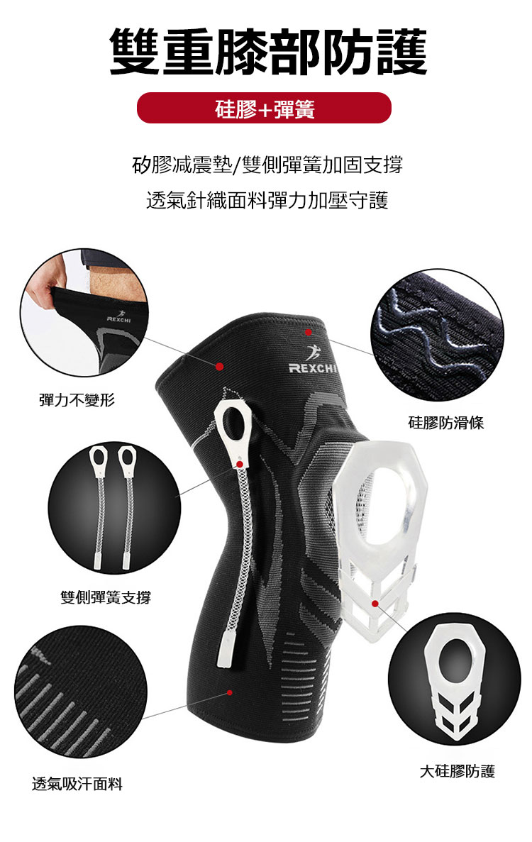 REXCHI專業運動護膝,彈力透氣針織面料,矽膠減震,3D加壓,彈簧支撐,恰到好處的舒適體驗!
