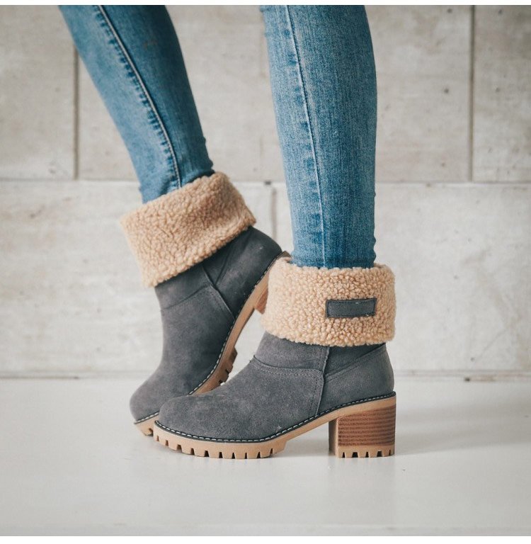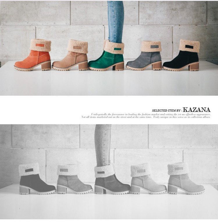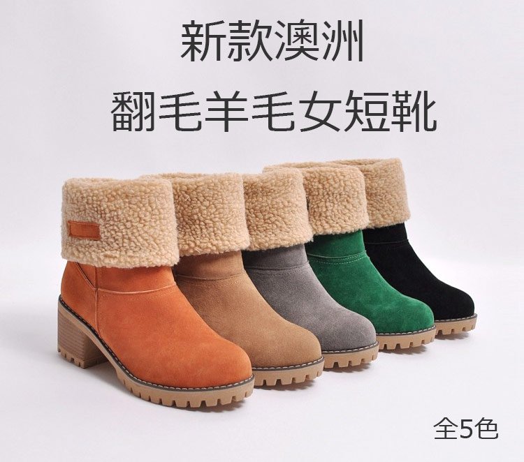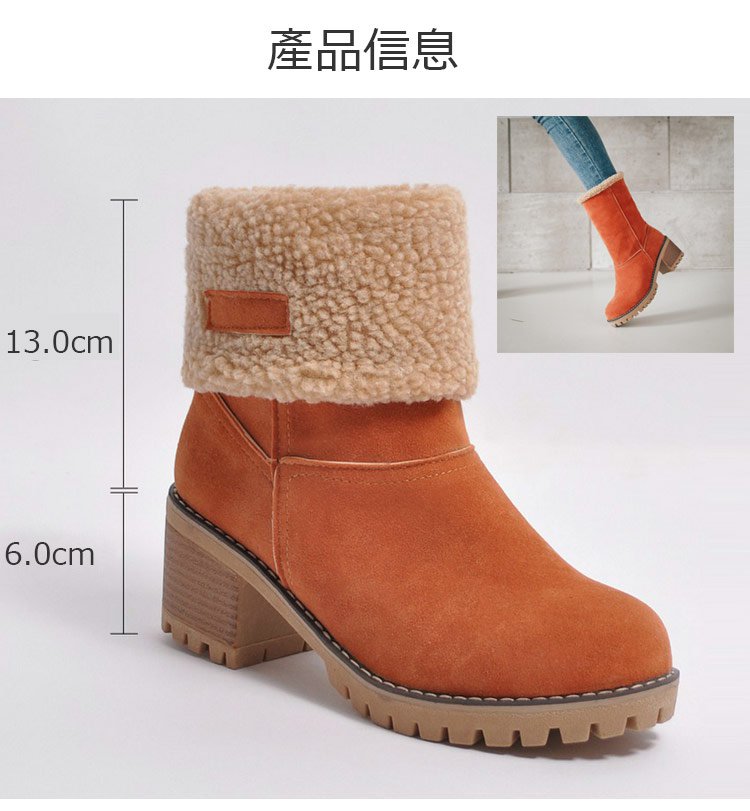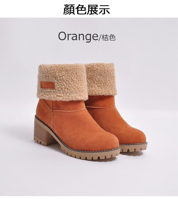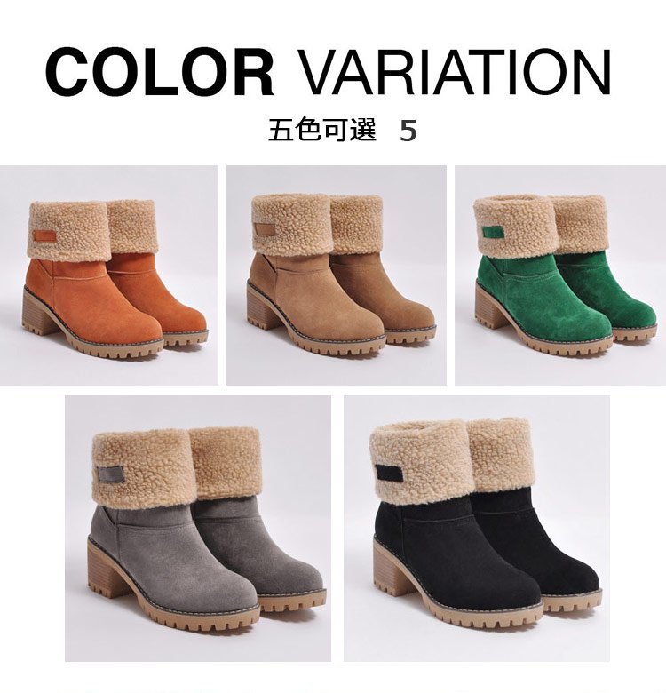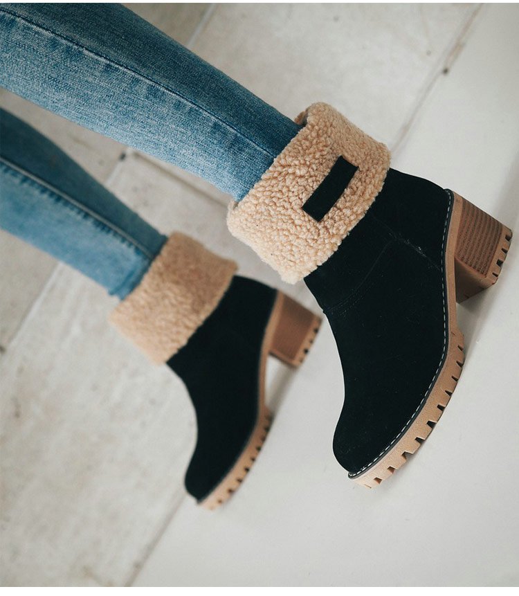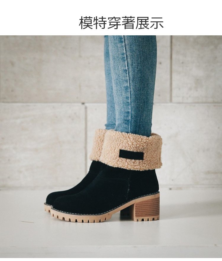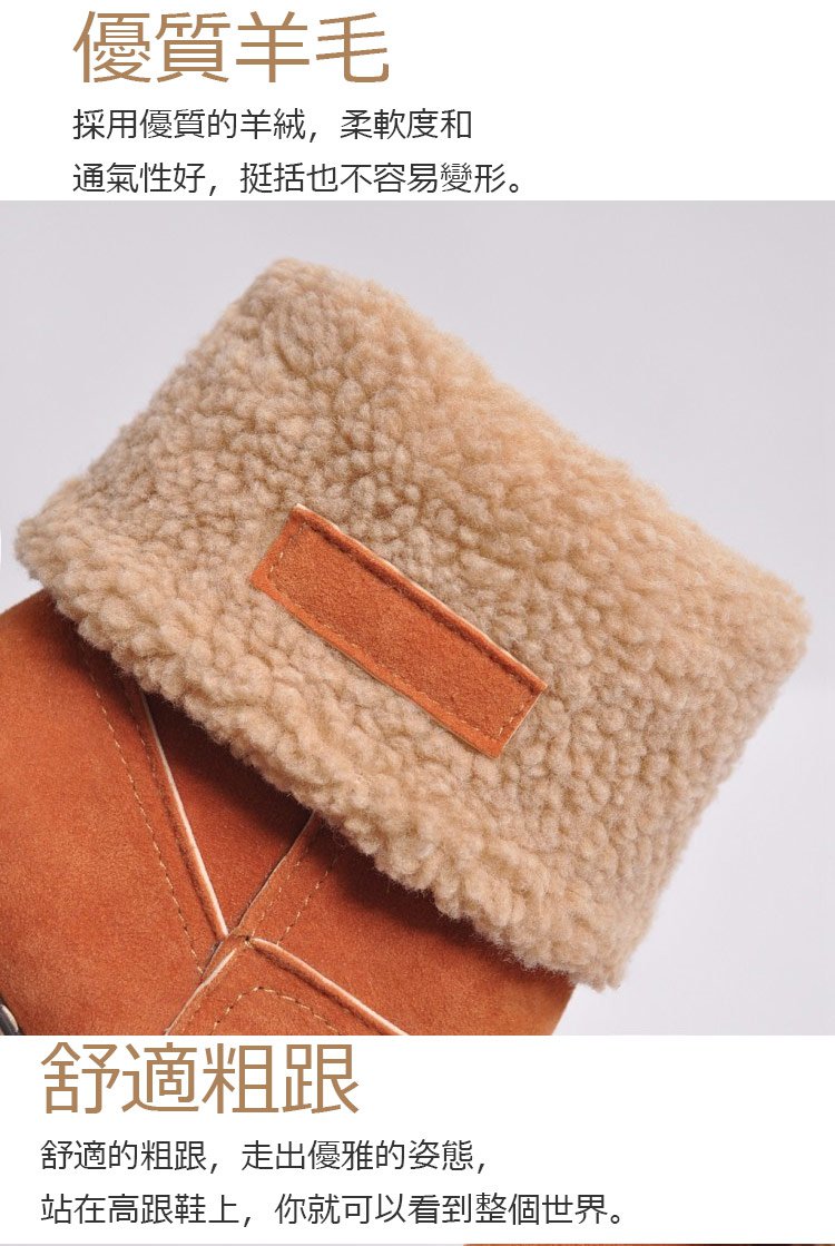 【保暖舒適】6cm粗跟羊絨短靴