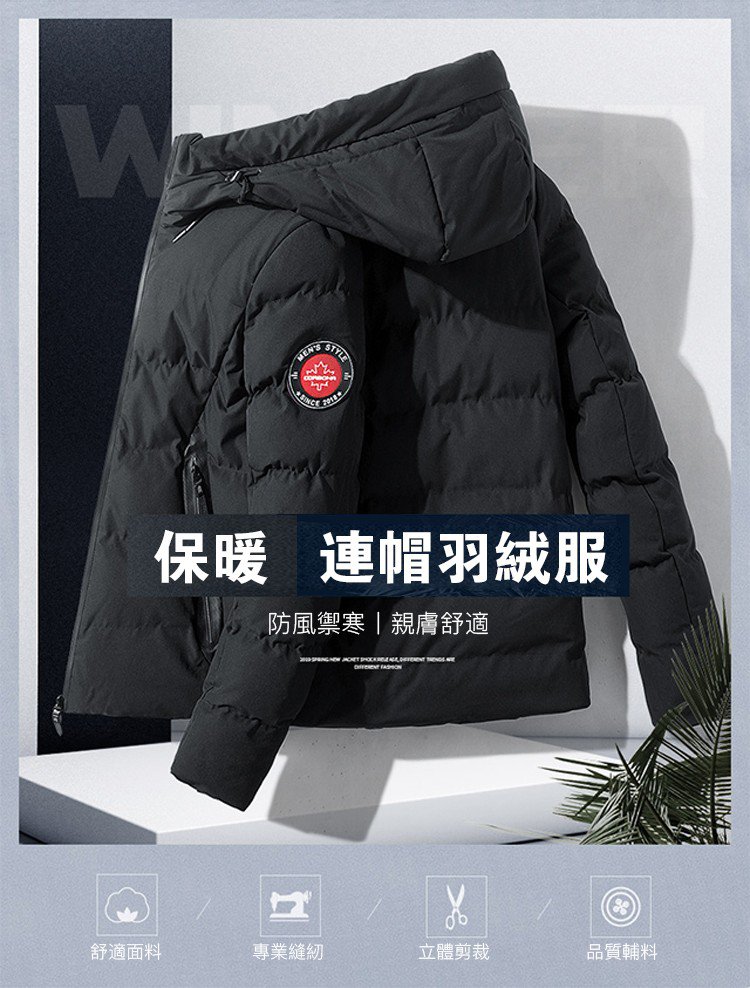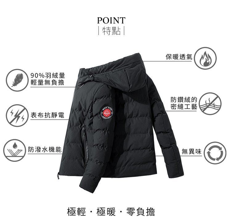 白鵝絨丨科技羽絨棉丨防水丨防風【連帽衫休閑羽絨服】