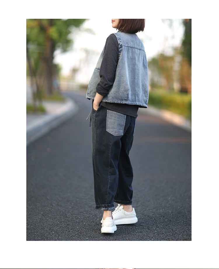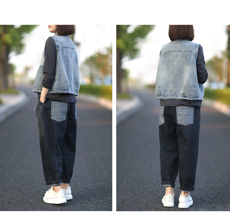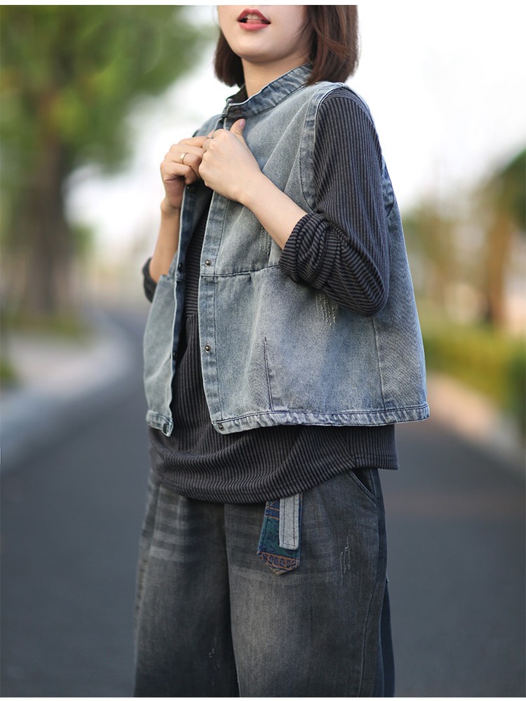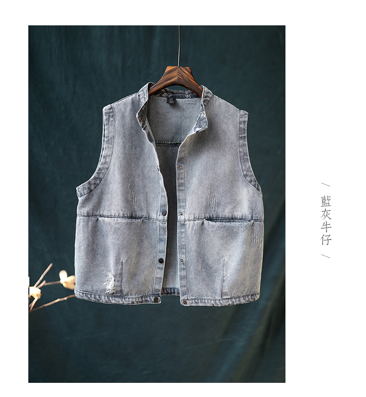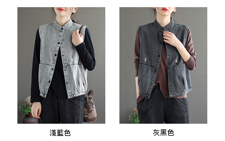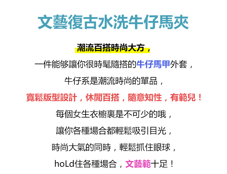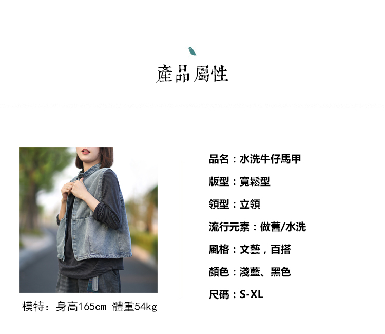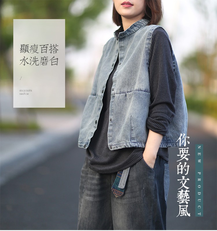 【妳要的文藝風】清新文藝,復古水洗牛仔馬甲,寬鬆舒適,優雅顯氣質!搭配半高領條紋T卹,一套免去搭配煩惱!