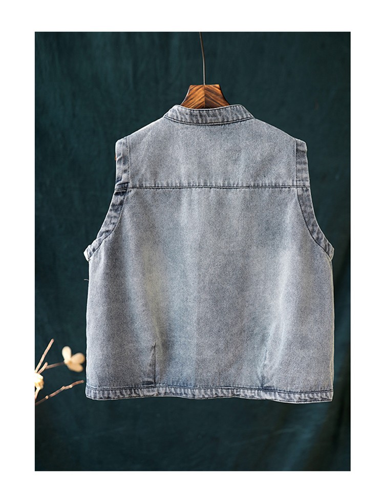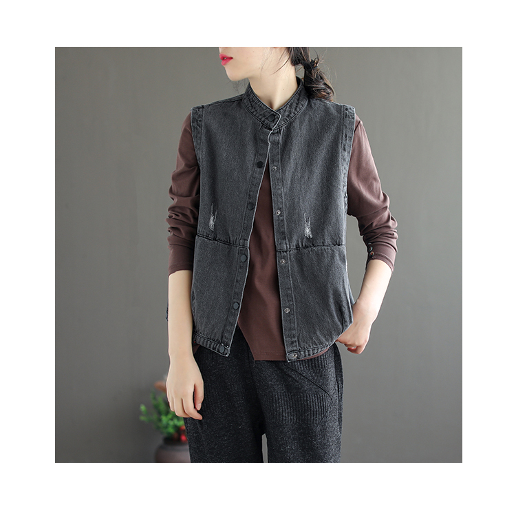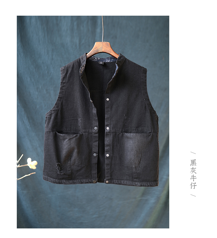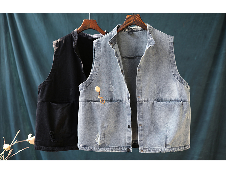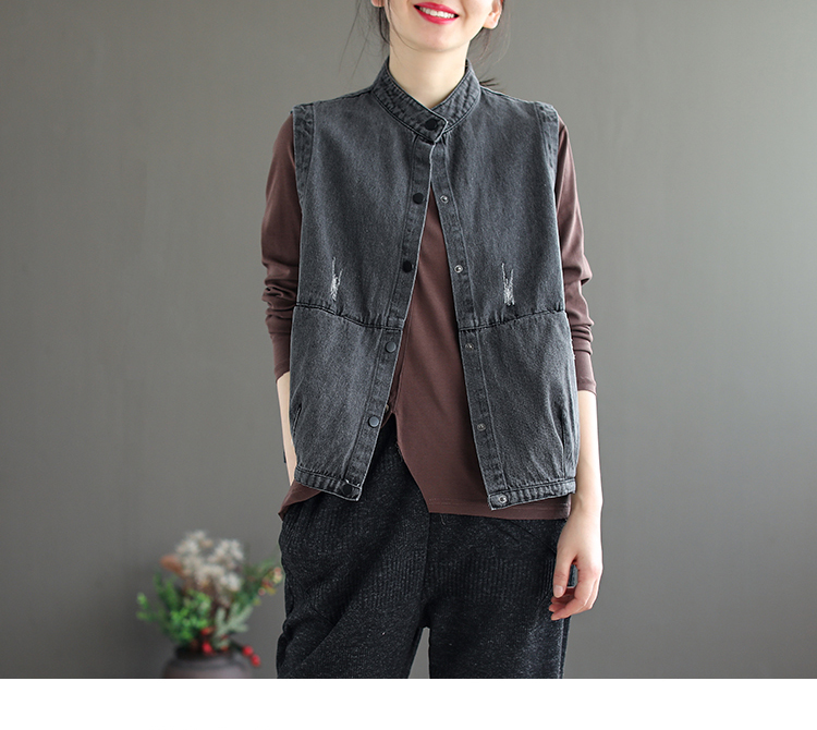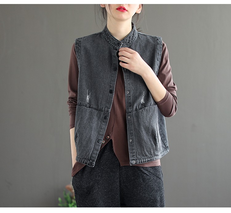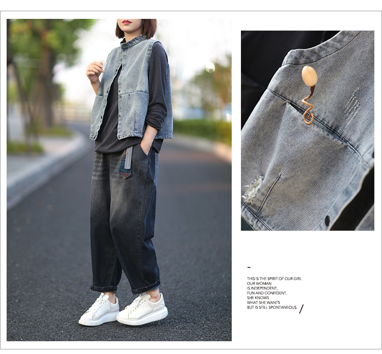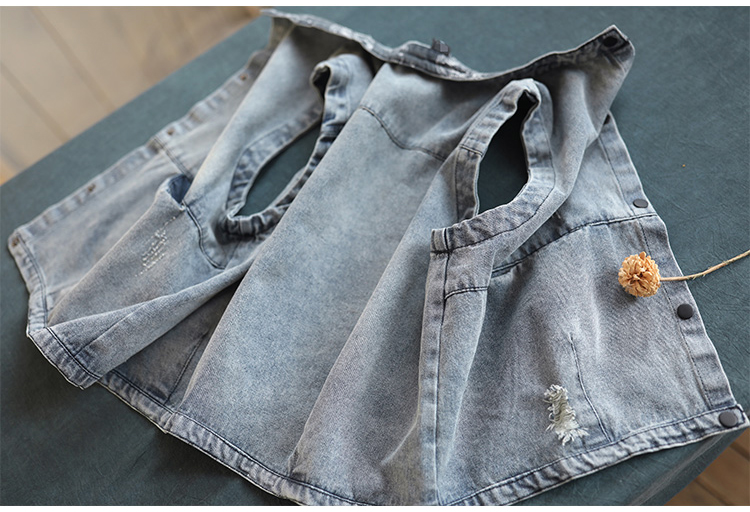 【妳要的文藝風】清新文藝,復古水洗牛仔馬甲,寬鬆舒適,優雅顯氣質!搭配半高領條紋T卹,一套免去搭配煩惱!